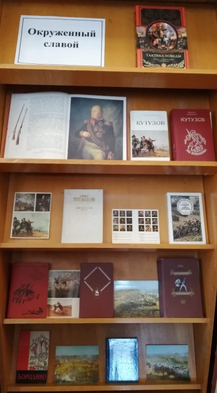 В Центральной городской библиотеке имени Л. Н. Никоновой отрылась выставка «Окруженный славой», посвящённая командующему русской армией, полному кавалеру ордена Святого Георгия, генералу-фельдмаршалу, светлейшему князю Михаилу Илларионовичу Голенищеву-Кутузову-Смоленскому.