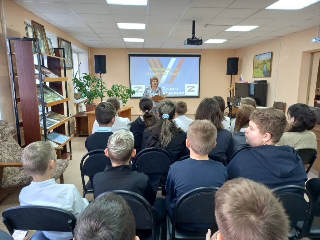 20 сентября сотрудники библиотеки-филиала № 2 микрорайона Северо-Задонск для детей участников СВО провели поэтический час «За мир на Земле», посвящённый творчеству современных поэтов, отражающих события специальной военной операции.
