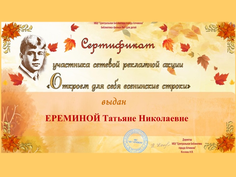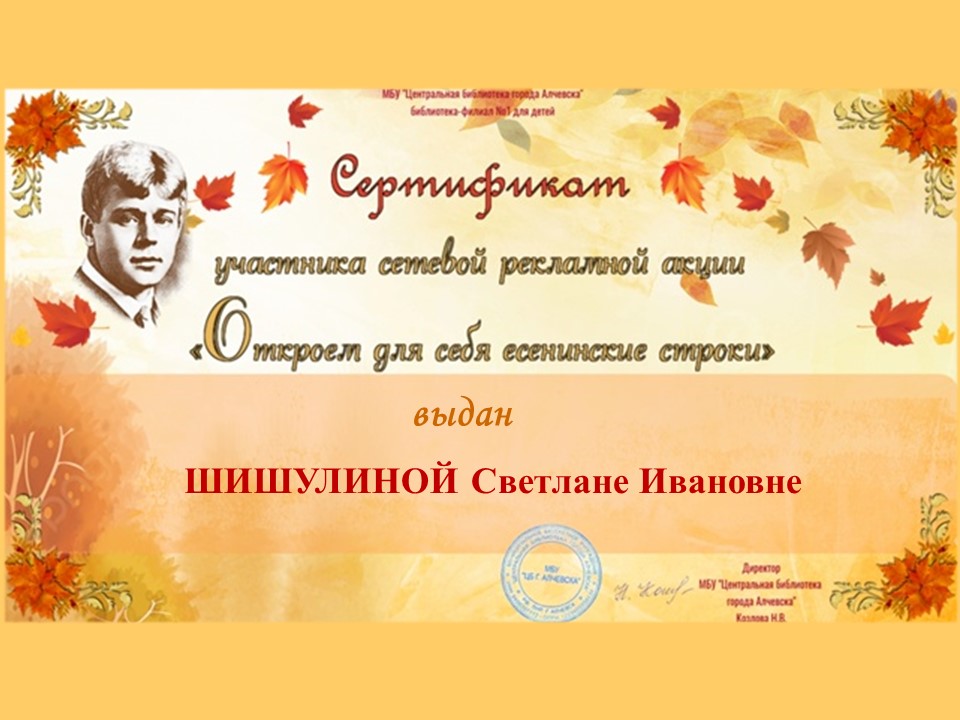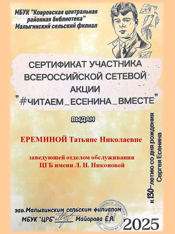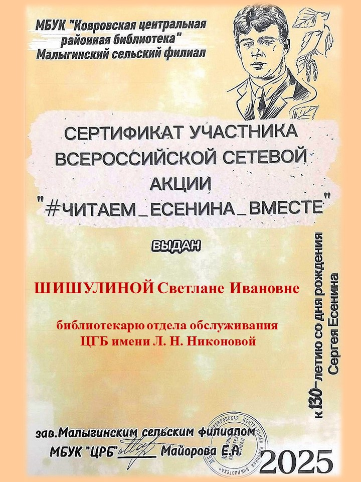 Сотрудники Центральной городской библиотеки имени Л. Н. Никоновой приняли участие в Межрегиональных сетевых акциях, посвящённых 130-летию со дня рождения поэта Сергея Есенина.
