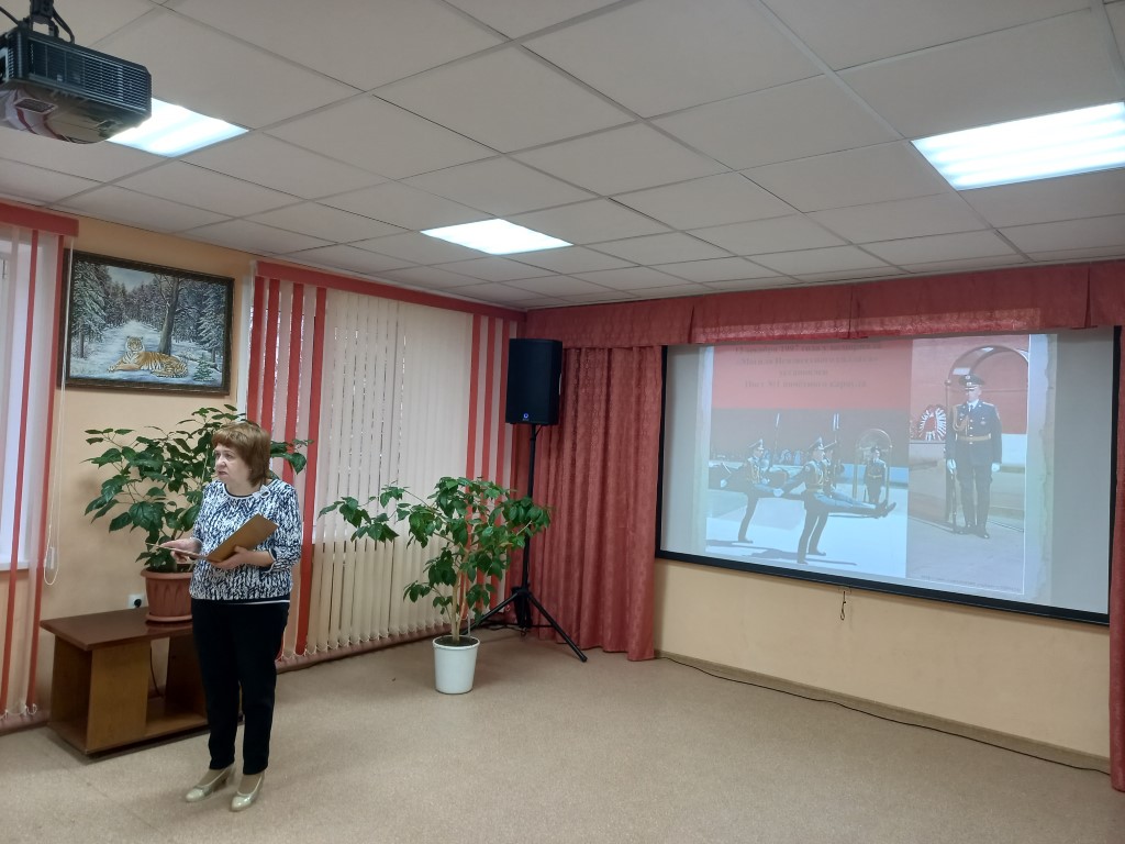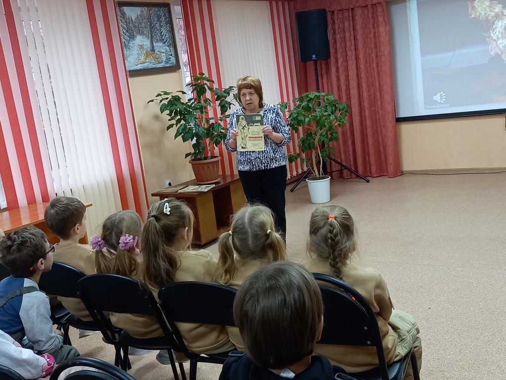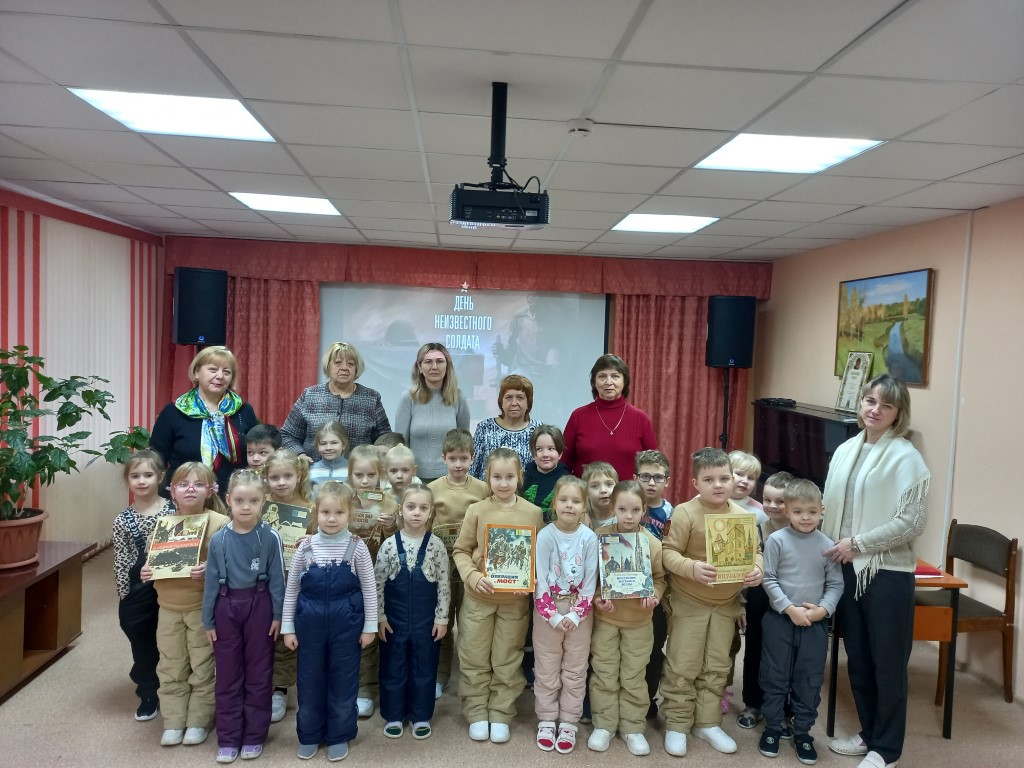 Эта памятная дата в России – день тихой скорби и величайшей благодарности. Она посвящена всем тем, кто отдал жизнь за Родину, но чьи имена остались неизвестными. Сотрудники рассказали детям об истории этого важного дня, а также о памятниках и мемориалах в России, установленных в честь солдат, не вернувшихся с войны. Были показаны видеоролики, посвящённые этому событию. Особый интерес вызвал обзор книг из серии «Дедушкины медали».