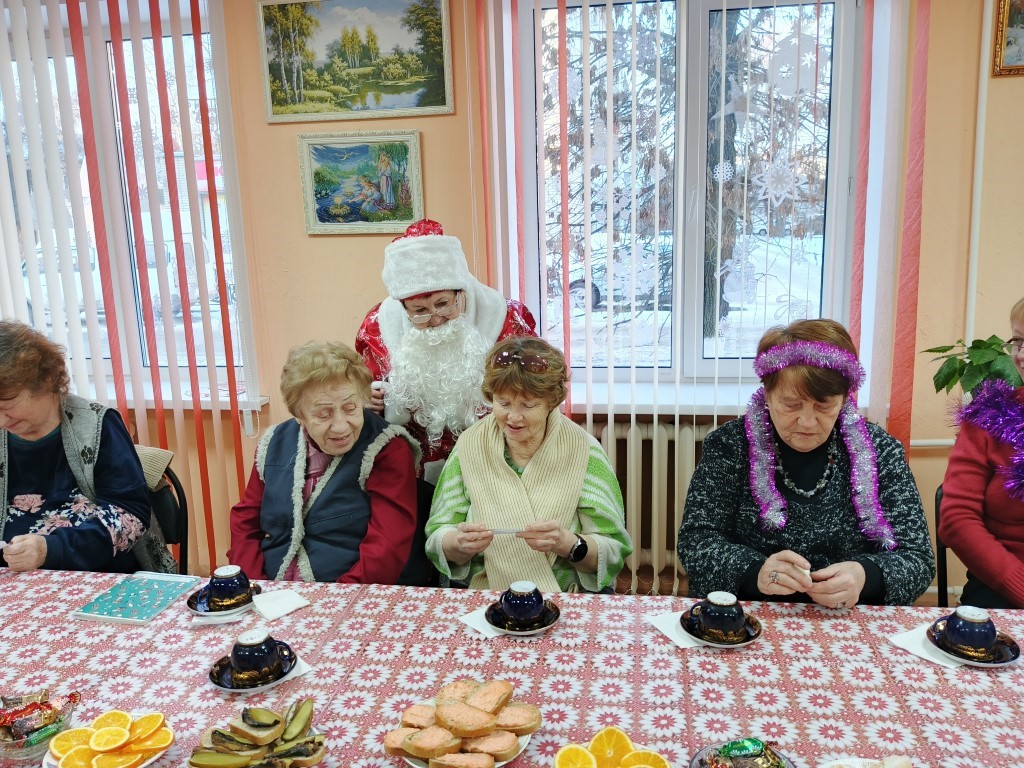 На вечер пожаловали Дед Мороз и Снегурочка, принеся с собой атмосферу сказки и веселья. Гостей ждала развлекательная программа с новогодними играми и конкурсами. Нарядная ёлка, накрытые для чаепития столы, зимние мелодии – всё это создало ощущение доброго праздника.