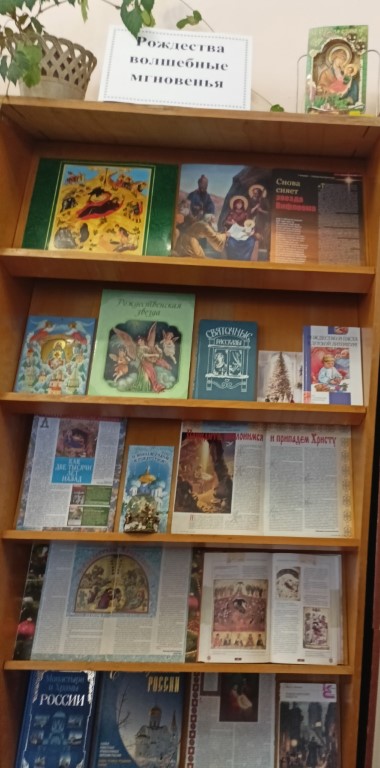 Центральная городская библиотека имени Л. Н. Никоновой предлагает вниманию пользователей выставочную экспозицию «Рождества волшебные мгновенья», посвящённую самому любимому православному празднику. Издания помогут глубже понять смысл праздника, заложить основы христианских добродетелей: веры, надежды, любви, милосердия, отзывчивости и честности.