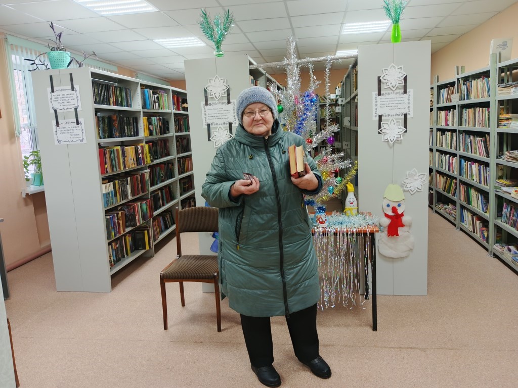 Первой читательницей, переступившей порог библиотеки в наступившем 2026 году, стала Татьяна Владимировна Филимонова. Она получила почётный «номер один» читательского формуляра и сладкий подарок.