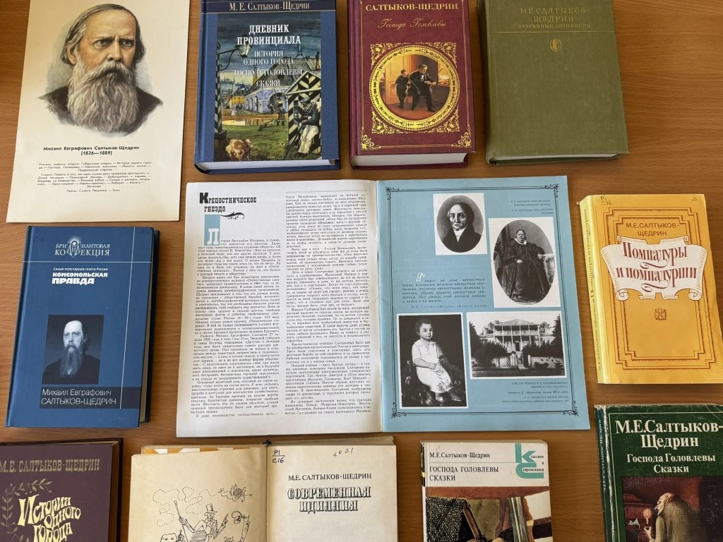 На выставке читатели найдут литературу о жизненном пути писателя, детских и юношеских годах. Кроме того, здесь представлены исследования литературоведов об особенностях его творчества и сатирической эстетики, об историко-философском содержании его произведений, а также ключевые произведения писателя – известные романы, повести и очерки. В их числе представлены «История одного города», «Господа Головлевы», «Сказки для детей изрядного возраста», «Премудрый пескарь», «Как один мужик двух генералов прокормил», «Медведь на воеводстве» и многое другое. Каждое из произведений открывает читателю новые грани гения писателя.