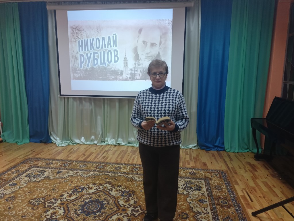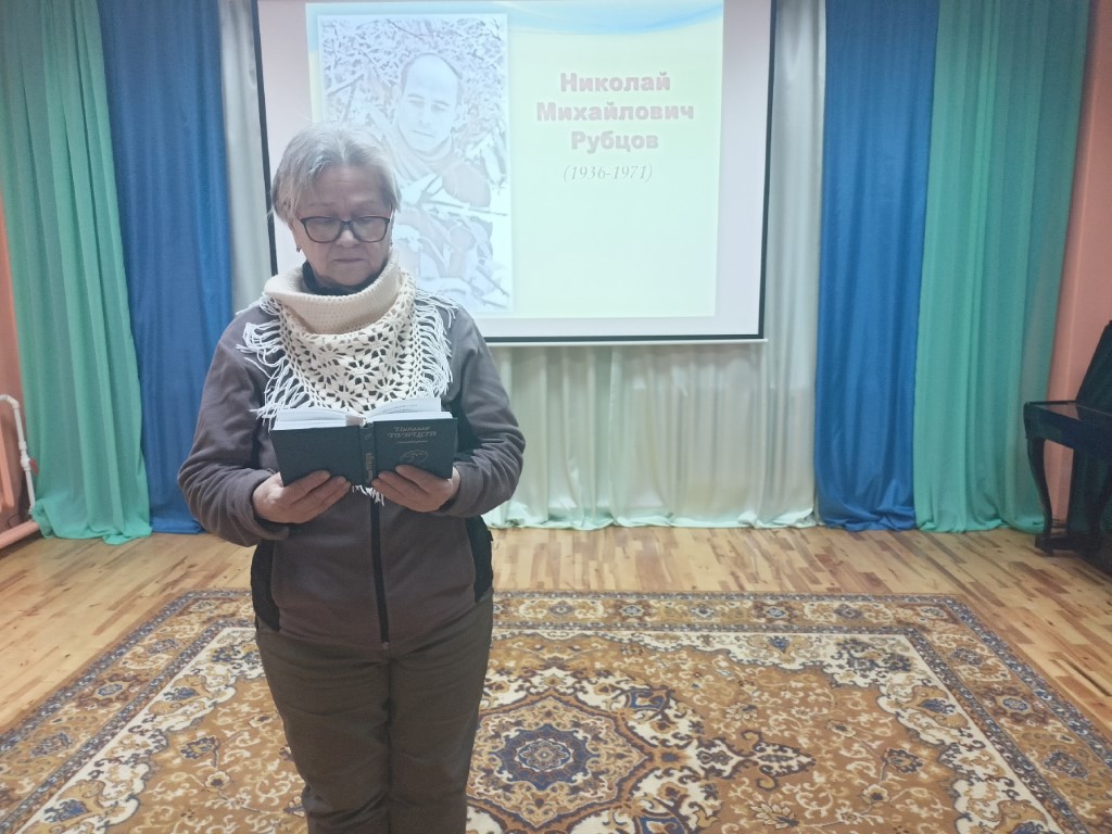 На вечере звучали прекрасные, пронзительные, полные любви к Родине, матери, женщине, природе стихи Н. Рубцова «Тихая моя Родина», «Русский огонёк», «Зимний вечер», «Я умру в Крещенские морозы» и другие.