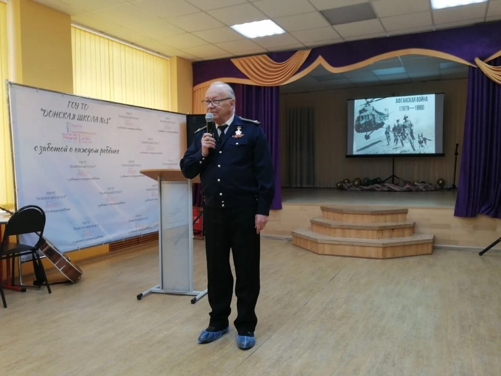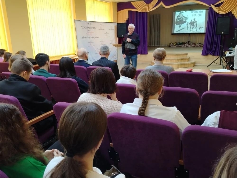 12 февраля сотрудники Центральной городской библиотеки совместно с Советом ветеранов (пенсионеров) войны, труда, вооружённых сил и правоохранительных органов города Донского провели для учащихся Донской школы № 1 час патриотизма «Афганистан – боль, ушедшая в вечность».