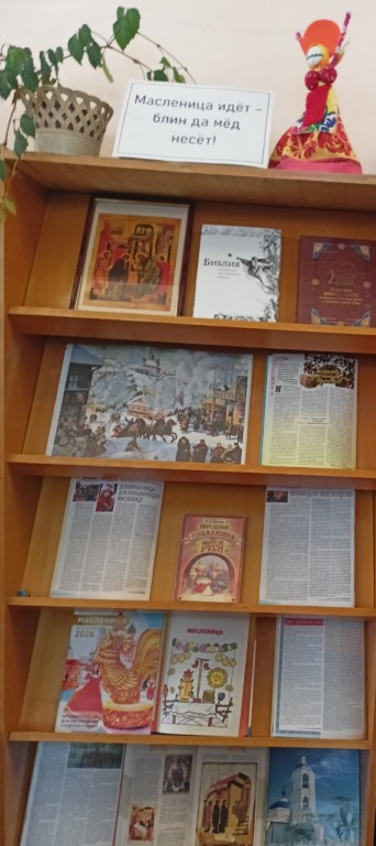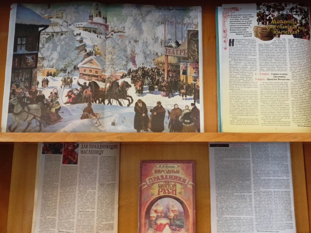 В дни празднования Масленицы в Центральной городской библиотеке имени Л. Н. Никоновой оформлена выставочная экспозиция «Масленица идёт – блин да мёд несёт». Издания, представленные на выставке, помогут узнать, о значении Масленицы, традициях празднования, её символах и о том, что означает каждый день Масленичной недели. Также можно найти замечательные рецепты блюд, которые можно приготовить в этот замечательный период.