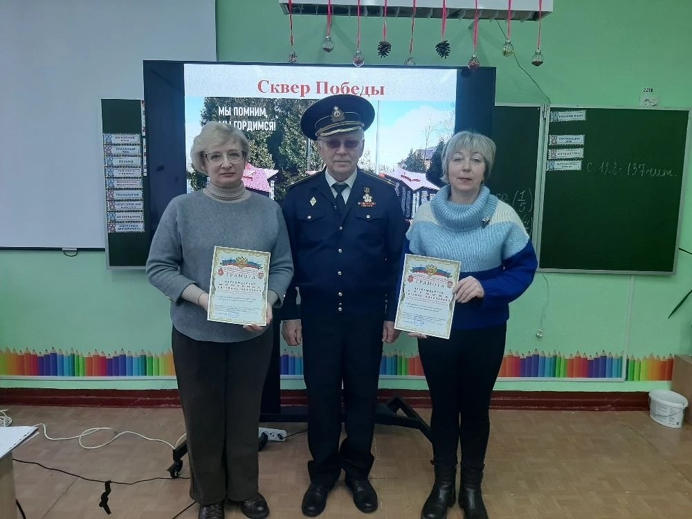 В заключение Виктор Александрович Раст вручил сотрудникам библиотеки Татьяне Ерёминой и Светлане Шишулиной Почётные грамоты Тульской областной общественной организации ветеранов (пенсионеров) войны, труда, вооружённых сил и правоохранительных органов за большой вклад в патриотическое воспитание молодёжи и активную жизненную позицию.