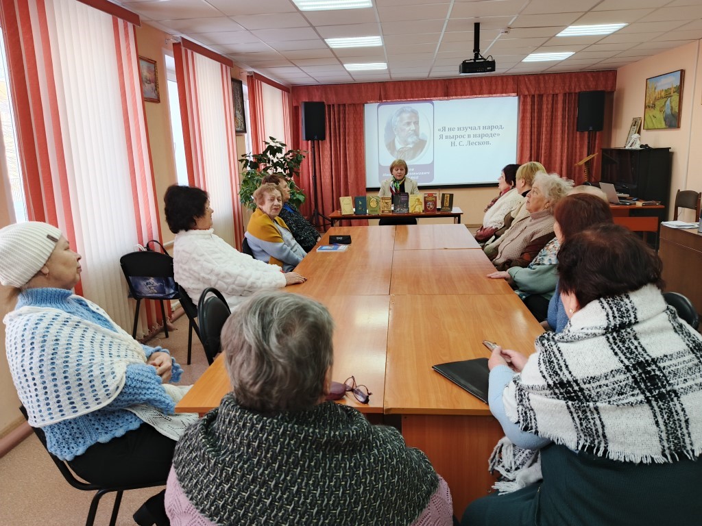 Члены салона познакомились с жизнью и творчеством писателя. Рассказ сопровождался видеопрезентацией, где были представлены основные моменты биографии Н. С. Лескова.