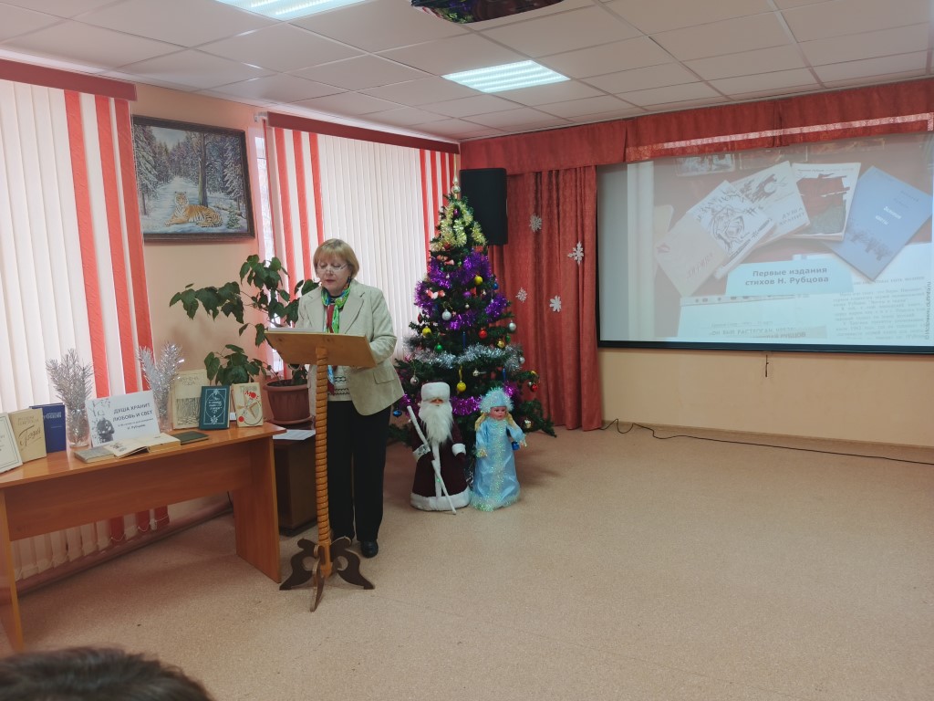 14 и 15 января сотрудники библиотеки-филиала № 2 микрорайона Северо-Задонск, в рамках проекта «Пушкинская карта», провели для учащихся школы № 5 и центра образования № 4 литературно-музыкальный вечер «И счастлив я, пока на белом свете горит, горит звезда моих полей». Вечер был посвящён 90-летию со дня рождения Николая Рубцова.