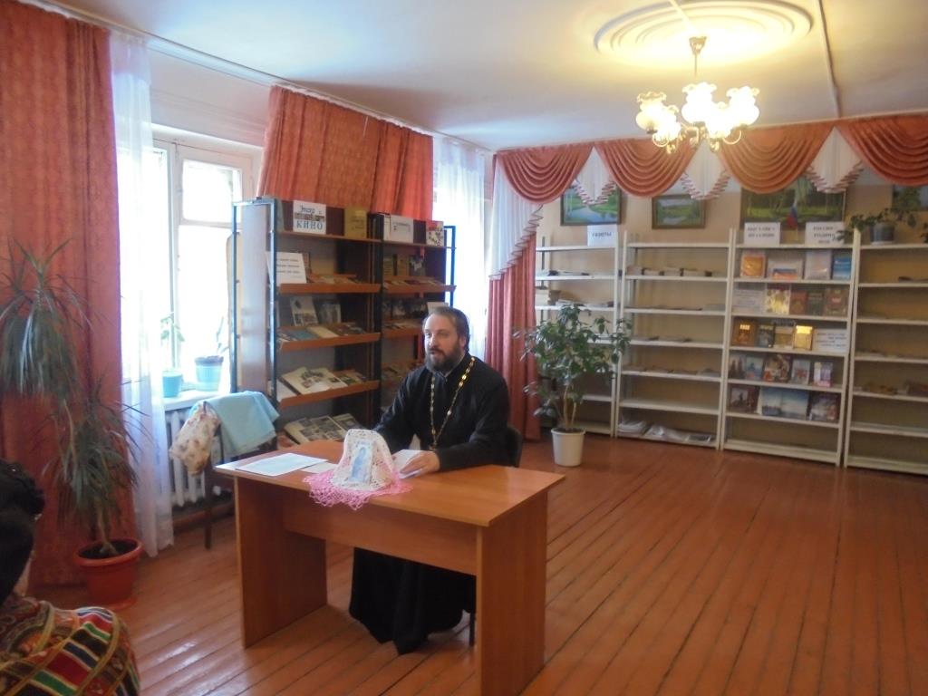 28 февраля в библиотеке-филиале № 2 микрорайона Северо-Задонск состоялась очередная встреча с Настоятелем храма «Всех святых, в земле Российской просиявших» – отцом Андреем. Батюшка рассказал о Великом посте, который начинается 14 марта, и ответил на вопросы присутствующих.