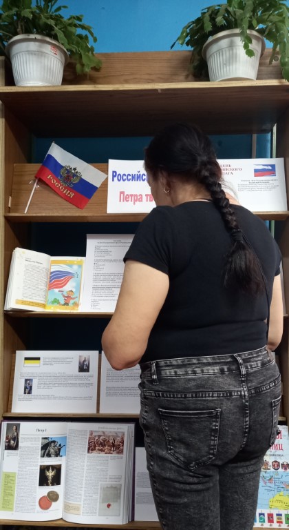 В библиотеке-филиале № 7 микрорайона Руднев подготовлена выставка-викторина «Российский флаг – Петра творенье». На экспозиции представлены энциклопедические издания и книги о фактах из истории российского флага, а также об истории всех знамён Древней Руси, издания с детальными описаниями флагов других государств и международных организаций. Читатели, пришедшие в этот день в библиотеку, смогли принять участие в викторине.
