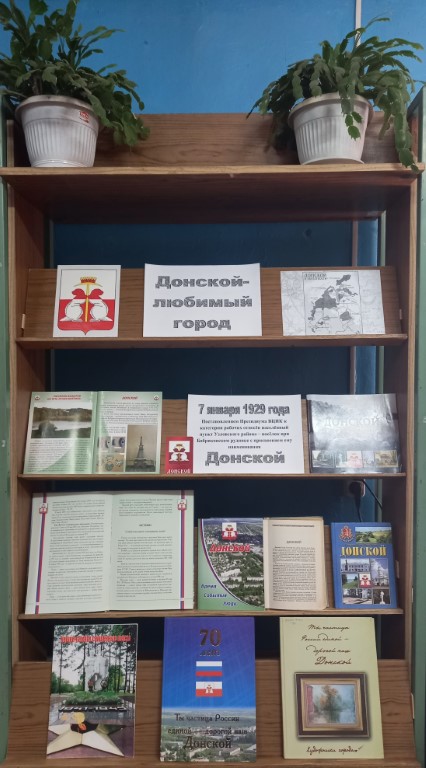 31 августа отмечается 85-летний юбилей города Донского. В библиотеке-филиале № 7 микрорайона Руднев представлена книжно-иллюстрированная выставка «Донской – любимый город».