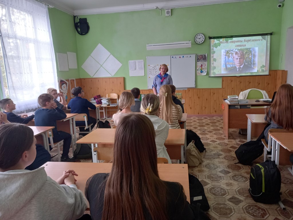 Школьники познакомились с биографией Сергея Есенина. Рассказ о непростой судьбе поэта сопровождался показом слайдов.