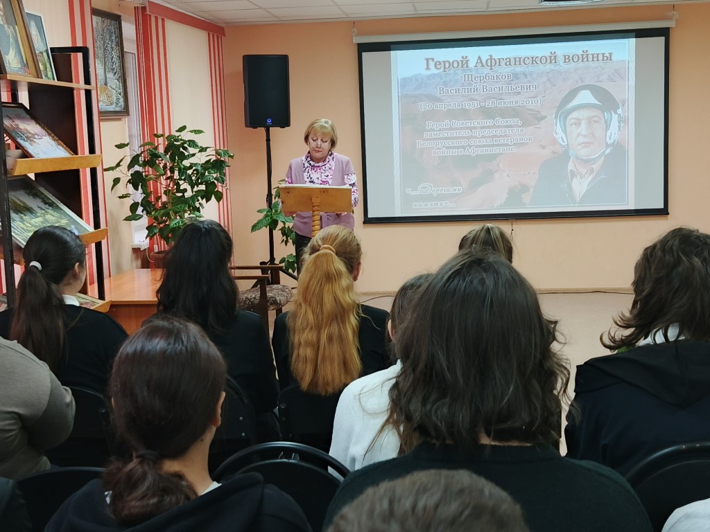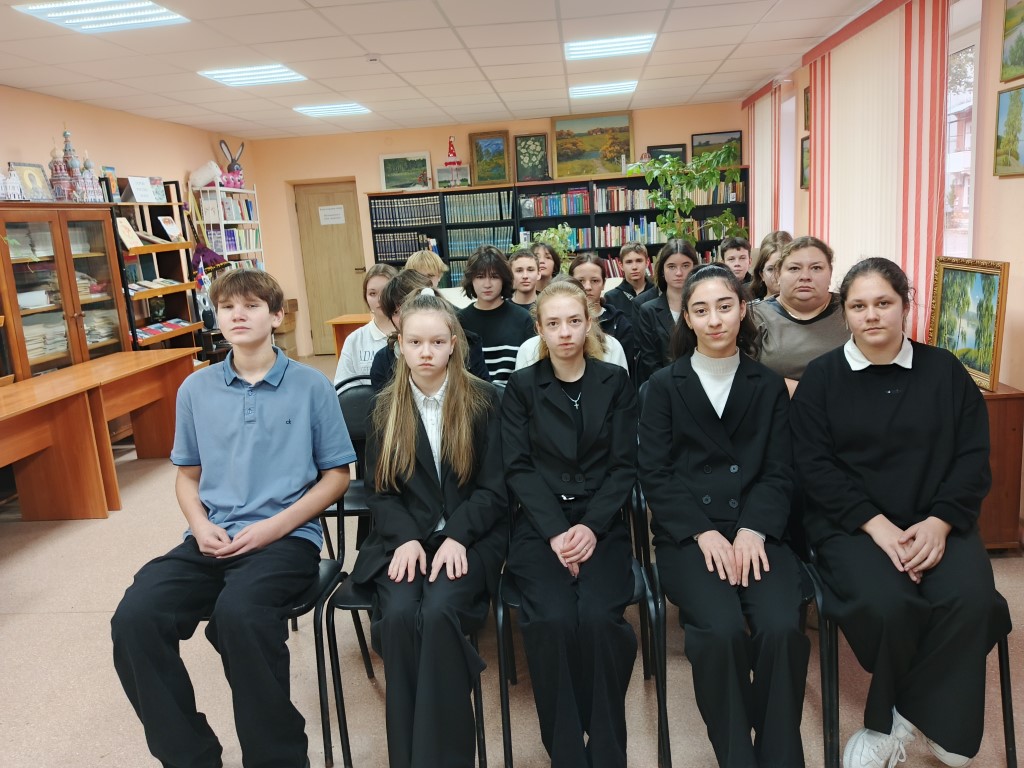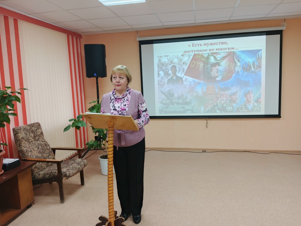 17 октября в библиотеке-филиале № 2 микрорайона Северо-Задонск для учащихся 8-го класса центра образования № 4 прошли громкие чтения «Есть мужество, доступное немногим». Ребятам были зачитаны отрывки из книги И. Шкадаревича «Бессмертный подвиг Александра Матросова», статья из журнала «Воин России» – о подвиге Евгения Родионова во время Чеченской войны, а также заметки из газет о героическом поступке Василия Щербакова в годы Афганской войны и о герое-участнике СВО – Иване Сынкове.