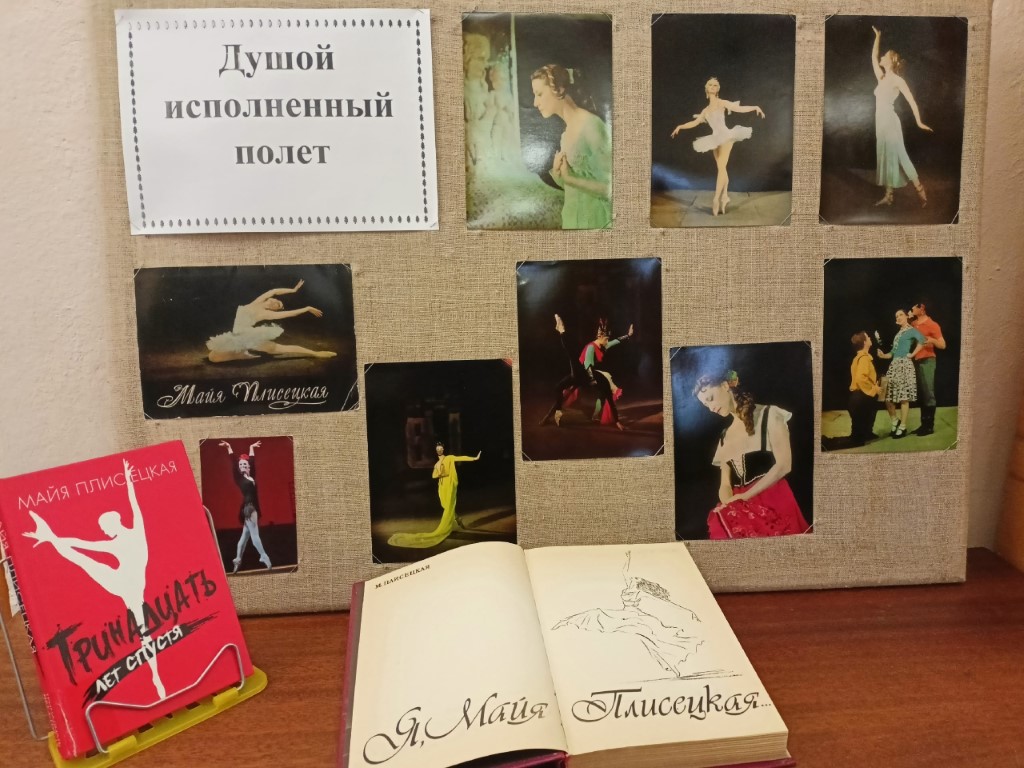 К этой знаменательной дате в Центральной городской библиотеке имени Л. Н. Никоновой оформлена выставочная экспозиция «Душой исполненный полёт». На ней представлены её авторские книги «Я, Майя Плисецкая…» и «Тринадцать лет спустя» и набор открыток «Майя Плисецкая», выпущенный издательством «Советский художник» в 1966 году тиражом 30000 экземпляров. Фото Р. Шраде.