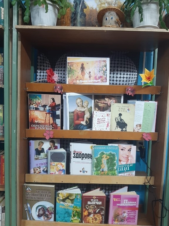 Ко Дню матери в библиотеке-филиале № 7 микрорайона Руднев оформлена выставочная экспозиция «Мир материнской любви». На выставке представлены книги известных писателей и поэтов, которые создавали в своих произведениях образ Матери – любящей и доброй, понимающей и всепрощающей, терпеливой и покорной, женственной и нежной, мужественной и стойкой в горе, открытой и щедрой в радости, окружающей теплом и заботой. Книжная выставка дополнена изданиями о том, как поддержать свое здоровье и интересными книгами, в которых содержится множество кулинарных рецептов.