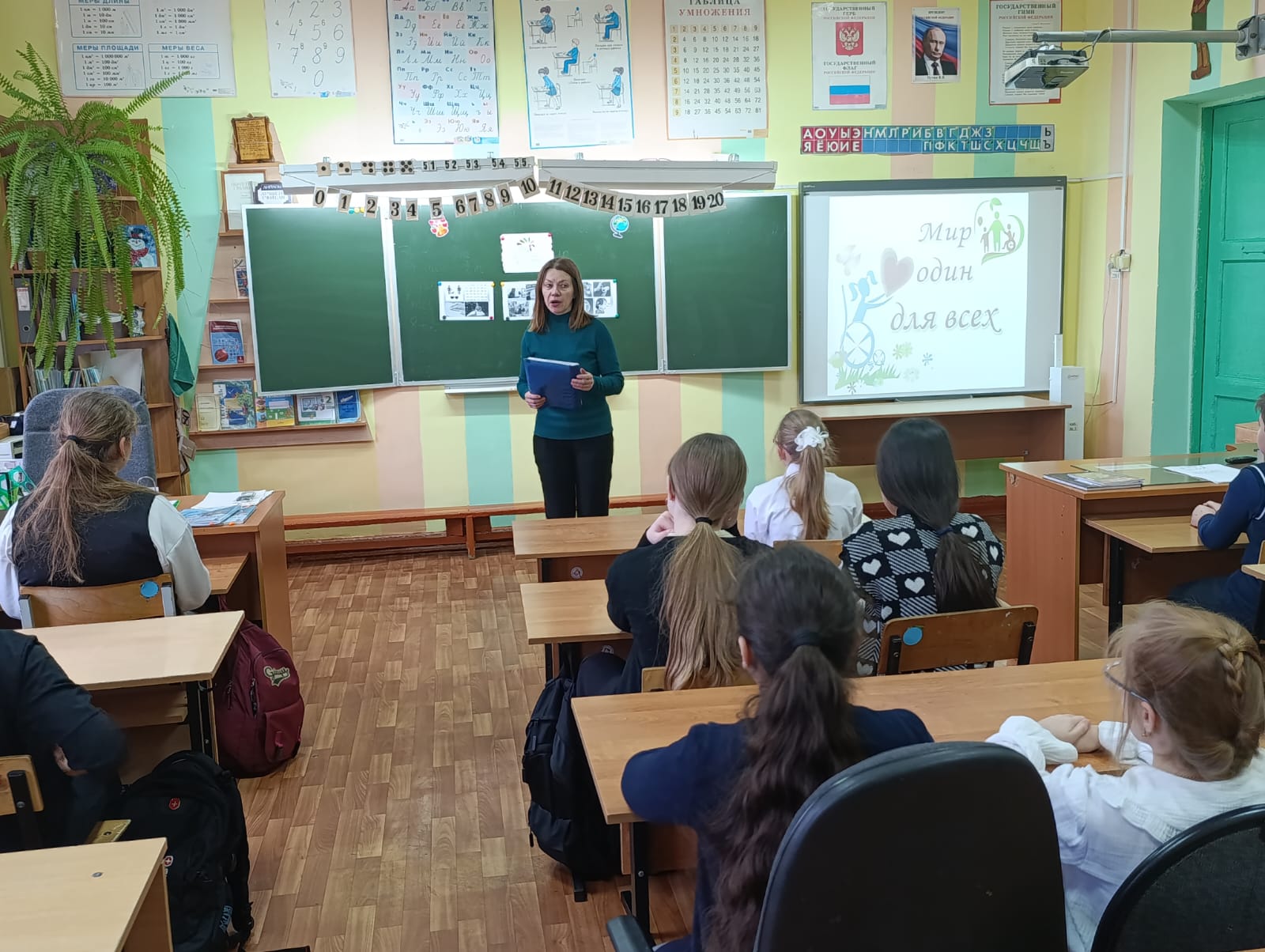 В этот день сотрудник библиотеки-филиала № 8 микрорайона Комсомольский на базе МБОУ «СОШ № 11» провела урок доброты «Мир один для всех». Ведущая мероприятия познакомила учащихся с особой датой – Международным днём инвалидов.