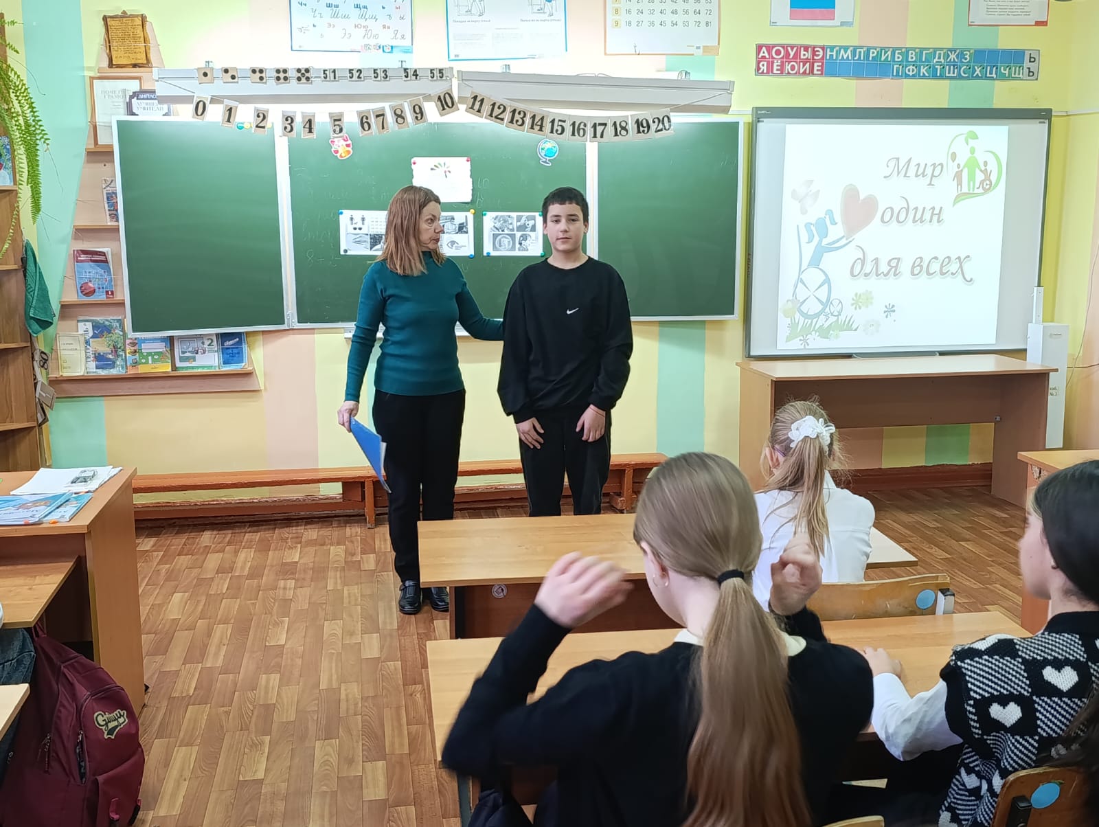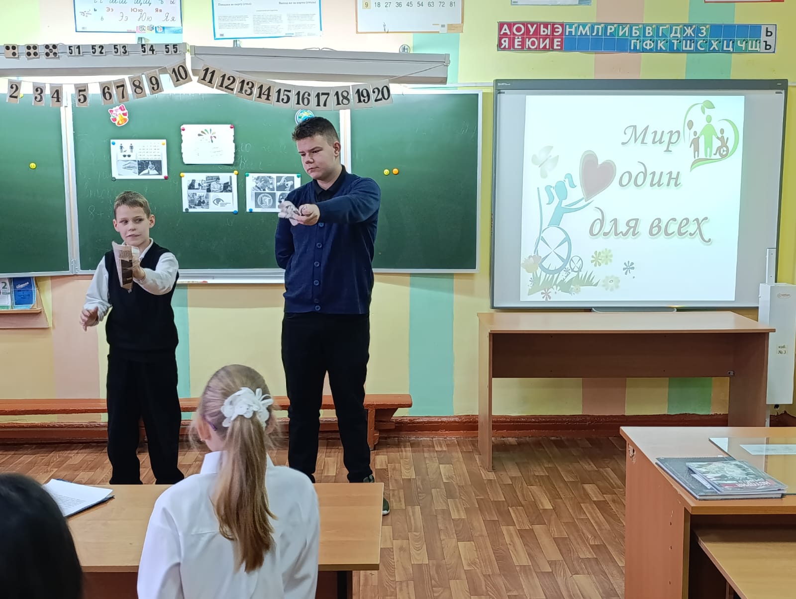 Вместе с ребятами поговорили о том, кто такие «особые люди» и почему их так называют. В ходе обсуждения школьники узнали об особенностях людей с нарушениями слуха, зрения, о способах общения с ними, и о том, что благодаря силе духа и воли люди с инвалидностью добиваются успехов в жизненных сферах.