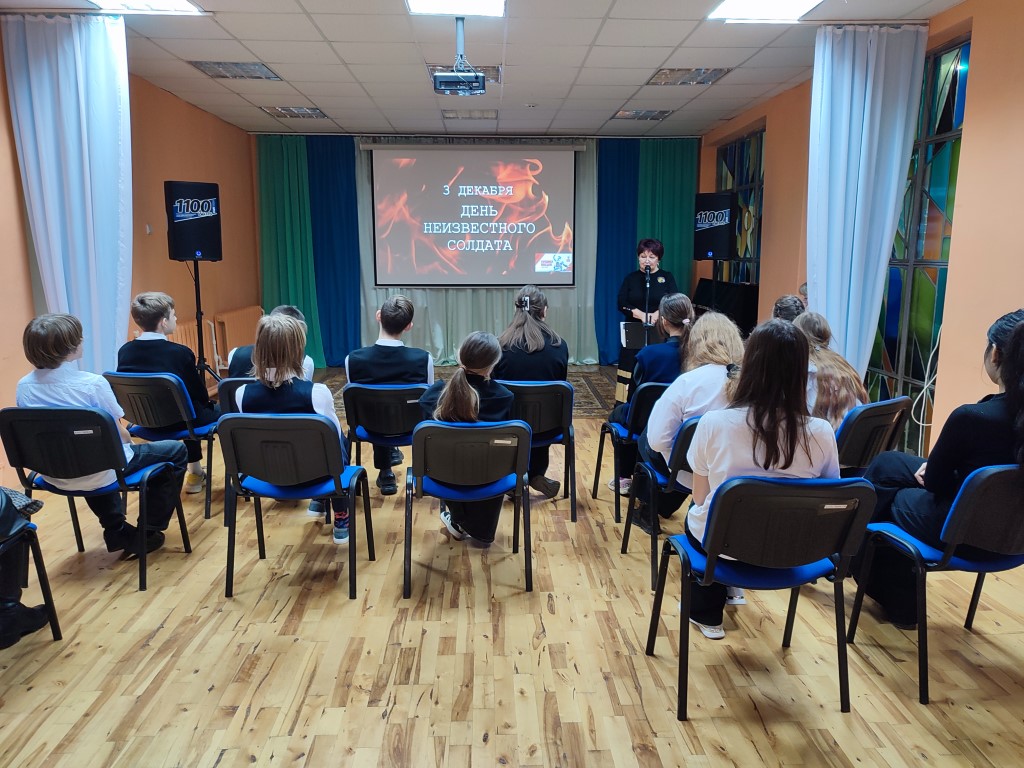 Сотрудники Детского отделения Центральной городской библиотеки имени Л. Н. Никоновой, в рамках проекта «Пушкинская карта», провели для старшеклассников МБОУ «ЦО № 2» исторический час «Вошедший в память неизвестным», посвящённый Дню Неизвестного Солдата. Мероприятие было направлено на сохранение памяти о тех, кто отдал свои жизни во имя Родины, чьи имена остались в безвестности.