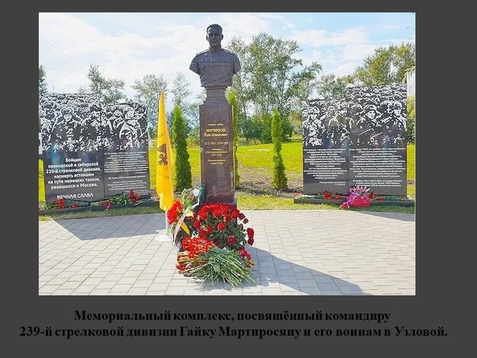 В Узловой в августе 2020 года в Сквере Героев открыли мемориальный комплекс, посвящённый генерал-майору Красной Армии, командиру 239-й стрелковой дивизии Гайку Мартиросяну и воинам его дивизии.