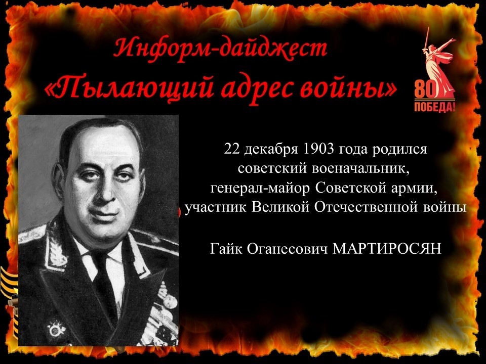 Известный генерал, почётный гражданин Еревана умер в столице независимой Армении в апреле 1995 года. Герой Советского Союза Андраник Казарян наилучшим образом характеризовал своего командира Гайка Мартиросяна: