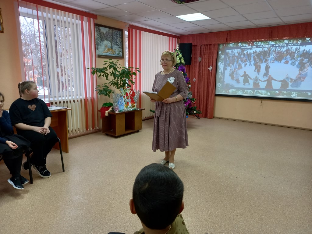 23 декабря сотрудники библиотеки-филиала № 2 микрорайона Северо-Задонск для учащихся центра образования № 4 провели праздник «Новогодние традиции народов России». Дети совершили путешествие по просторам нашей Родины, познакомились с народными обычаями: Бурятии, Мордовии, Чувашии, Башкирии, Марий Эл, Дагестана. Национальные мелодии, игры: «Снежки», «Фанты», «Художники», «Иголка с ниткой», «Бой петухов», «Веселые платочки»; танцы. дружный хоровод создали атмосферу праздника и зарядили всех новогодним настроением.