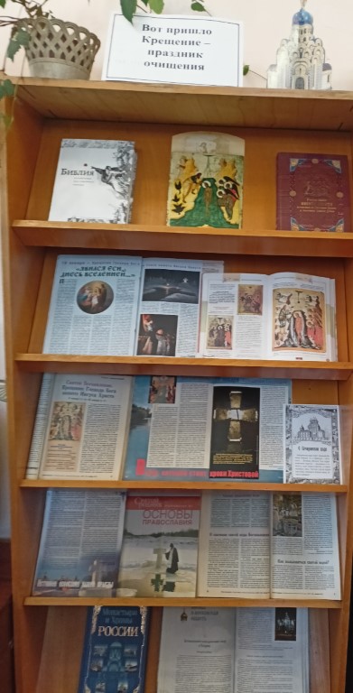 очная экспозиция «Вот пришло Крещение – праздник очищения», которая познакомит посетителей библиотеки с историей праздника, его традициями и народными Крещенскими приметами.