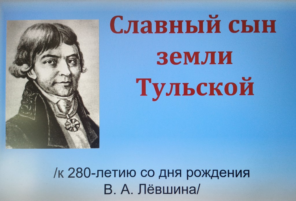 4 февраля сотрудники библиотеки-филиала № 2 микрорайона Северо-Задонск провели для учащихся 7-го класса школы № 5 вечер-портрет «Славный сын земли Тульской», посвящённый 280-летию со дня рождения В. А. Лёвшина.
