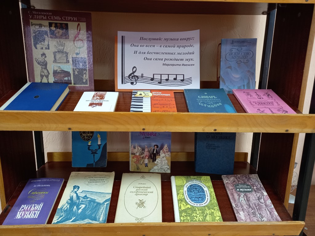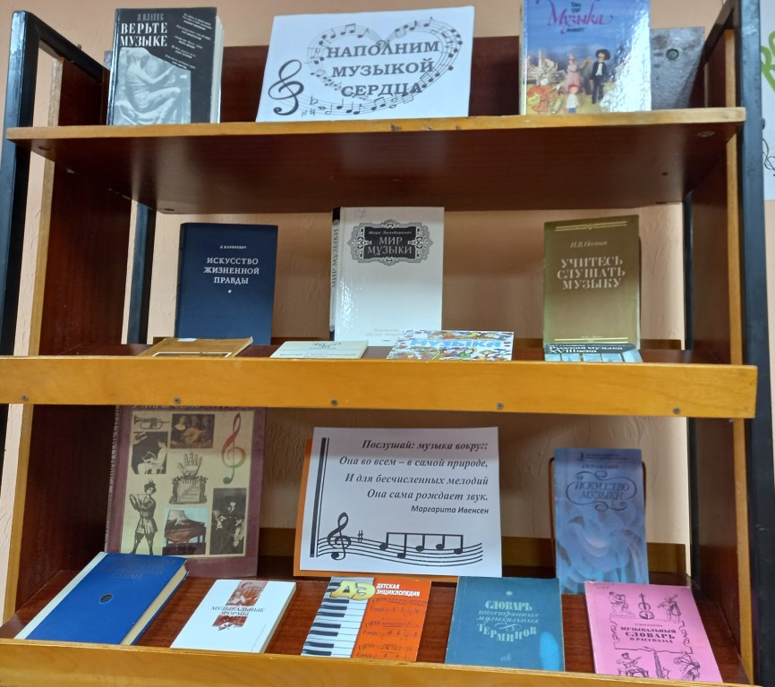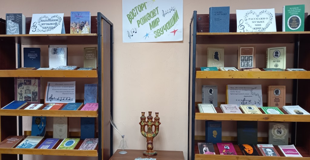 В рамках эстетического воспитания подрастающего поколения, 4 марта, в библиотеке-филиале № 2 микрорайона Северо-Задонск открыта выставка «Восторг рождает мир звучащий».