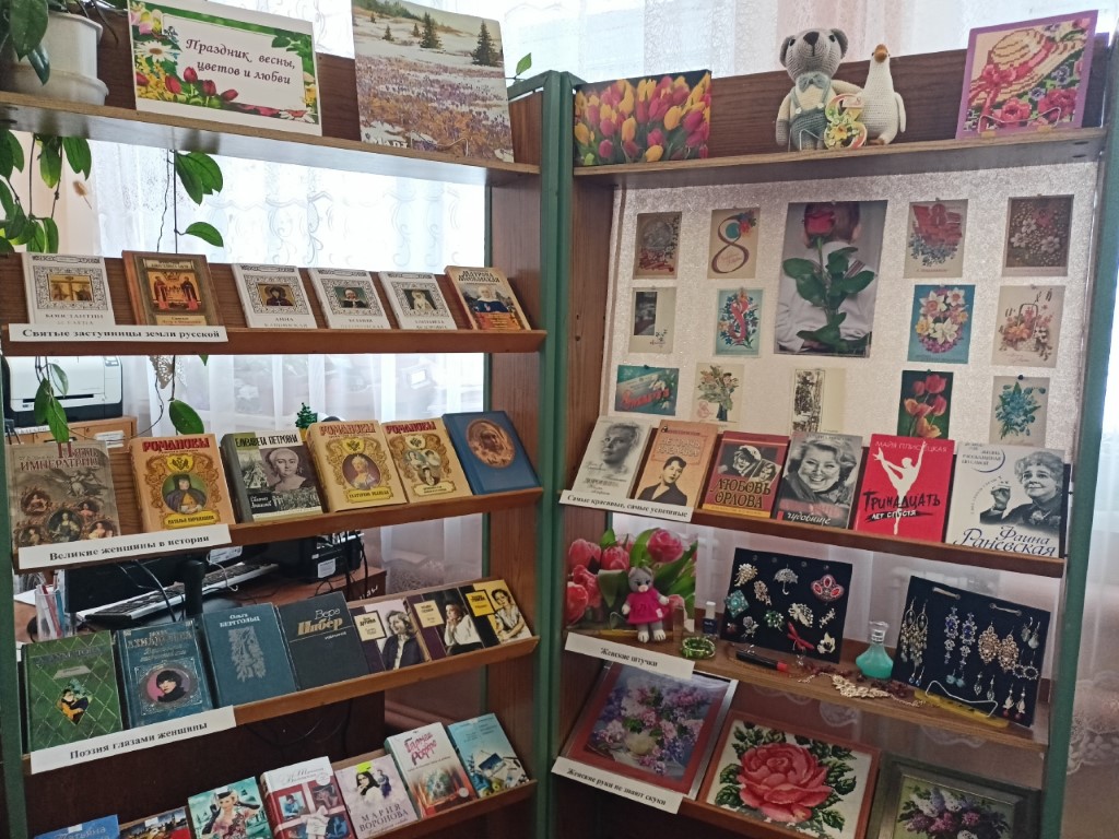 В преддверии Международного женского дня в Центральной городской библиотеке имени Л. Н. Никоновой оформлена выставка-настроение «Праздник весны, цветов и любви».